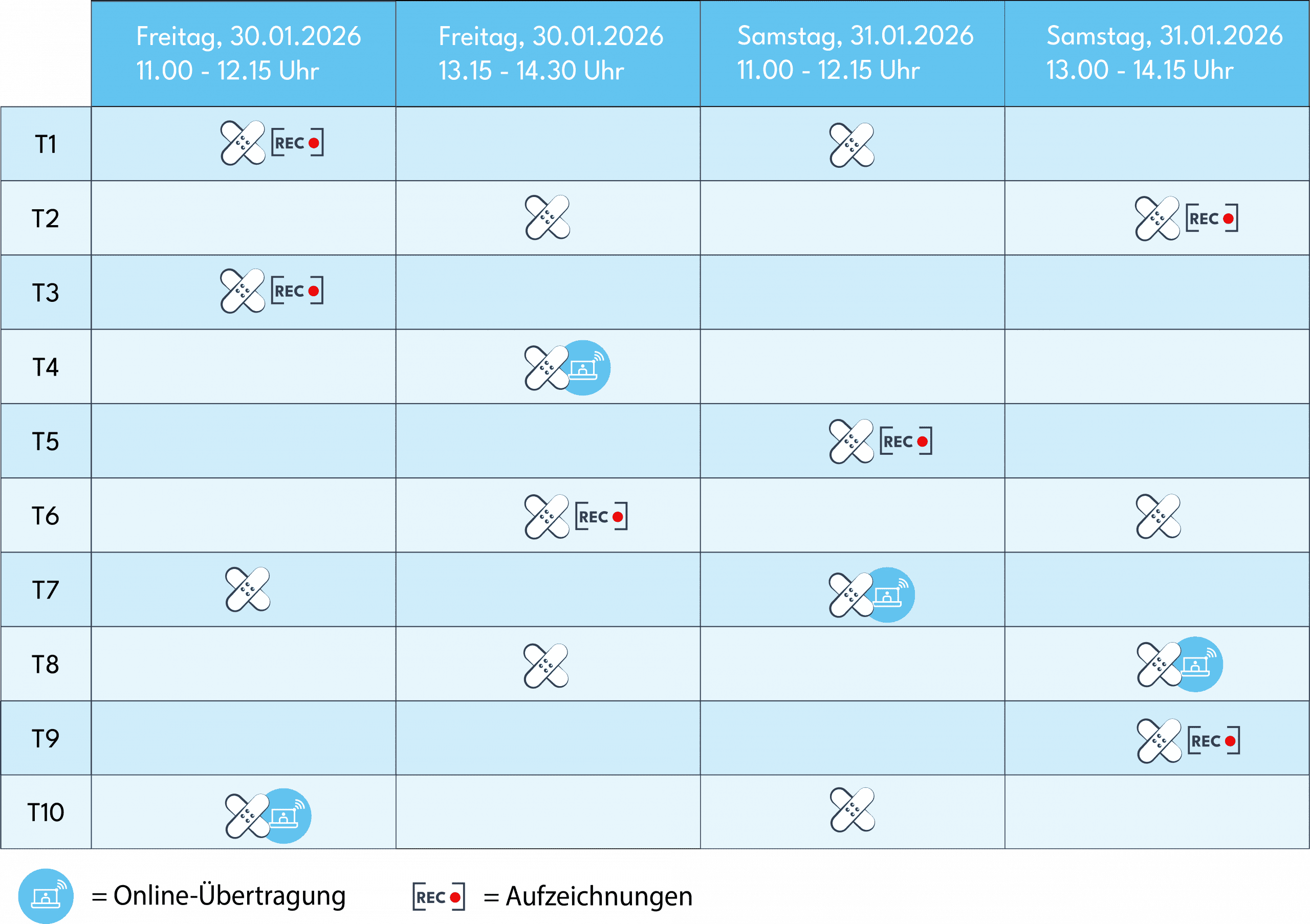 Zeitplan und Beschreibungen siehe unten.